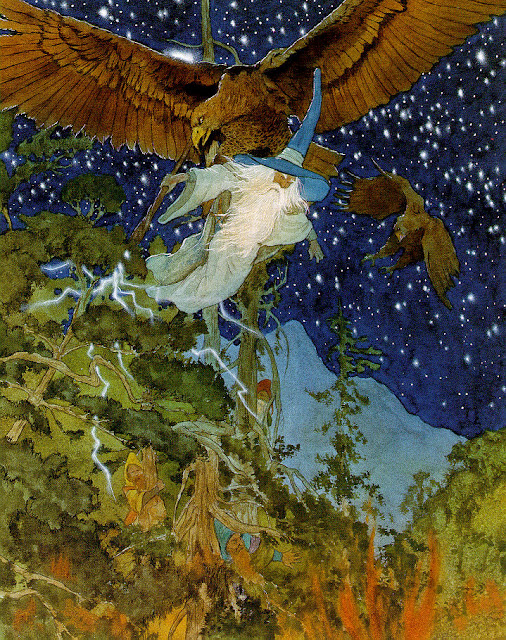 Bilbo and Gandalf. Image (1967) by Maurice Sendak / Beinecke Rare Book and Manuscript Library of Yale University via Library Thing. For more on Sendak's version, go here.
